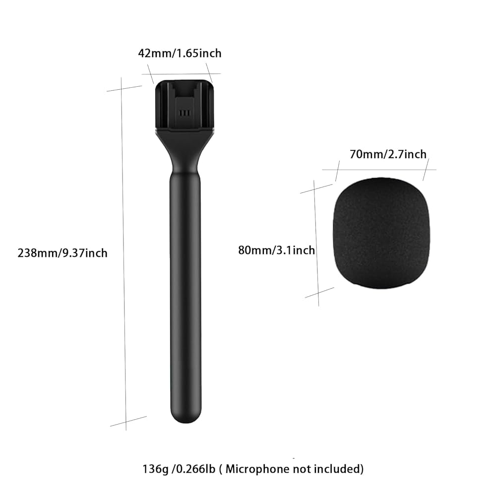 【MODÈLES APPLICABLES 】 La poignée du microphone d'interview a une conception de sabot froid intégrée supérieure, convient pour Moma, convient pour Relacart, convient pour Relacart, convertissant le microphone lavalier en un microphone à main.